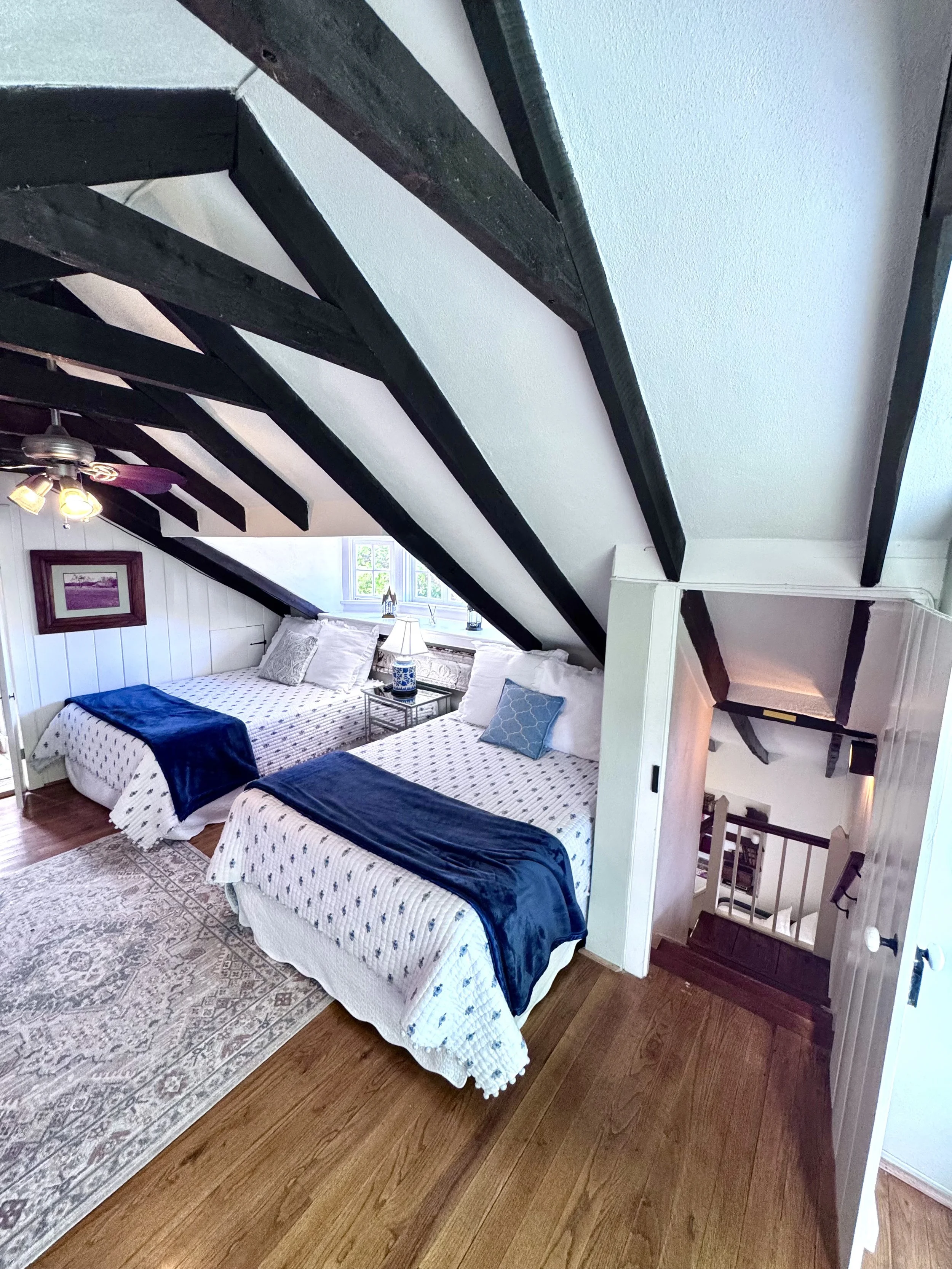One of my favorite parts of The Sweet Escape was the original Sunday House—cozy, historic, and beautifully preserved. It features a landmark fireplace that set the perfect mood for evenings in, along with a pool table, Roku TV, wet bar, and the most inviting double loft.
