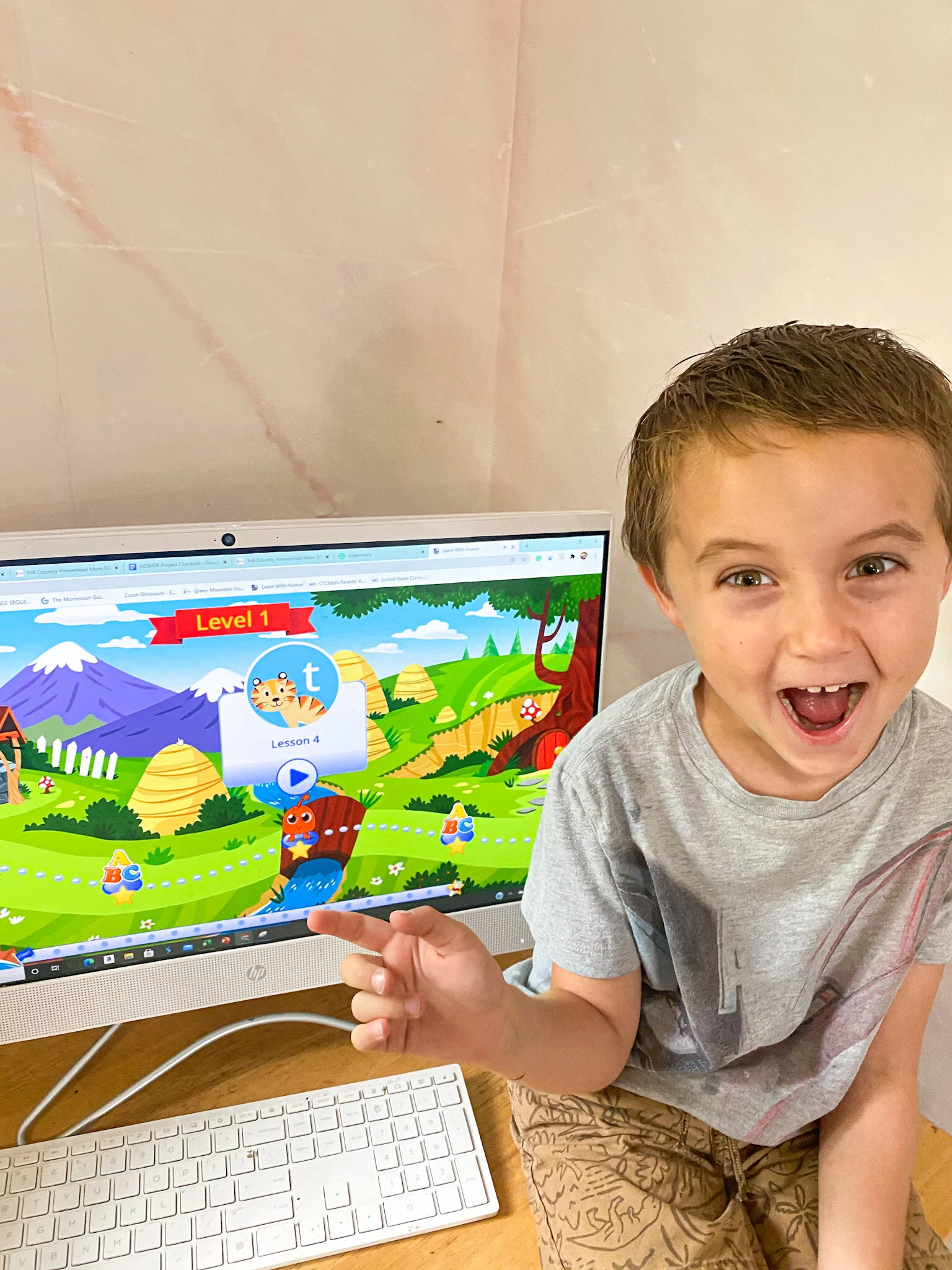 I am thrilled to share the program we have been using for Lincoln and Adalina for the past month. When we finally decided to keep Lincoln home for Kindergarten this year I ordered the beginning readers and a few workbooks for him and considered the subject of reading covered. Little did I know we needed Homer Reading in our lives! This program is so diverse in learning applications to support reading initiatives with colorful and interactive activities, the kids beg to log on every day! It’s a huge help when I need to get a little work done or am trying to get dinner ready I can let the kids log on to Homer and I know it’s educational and fun for all of them.